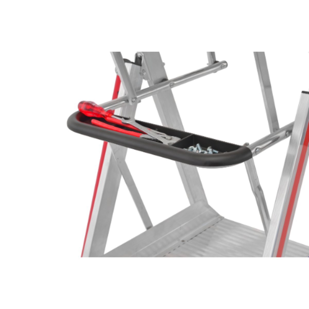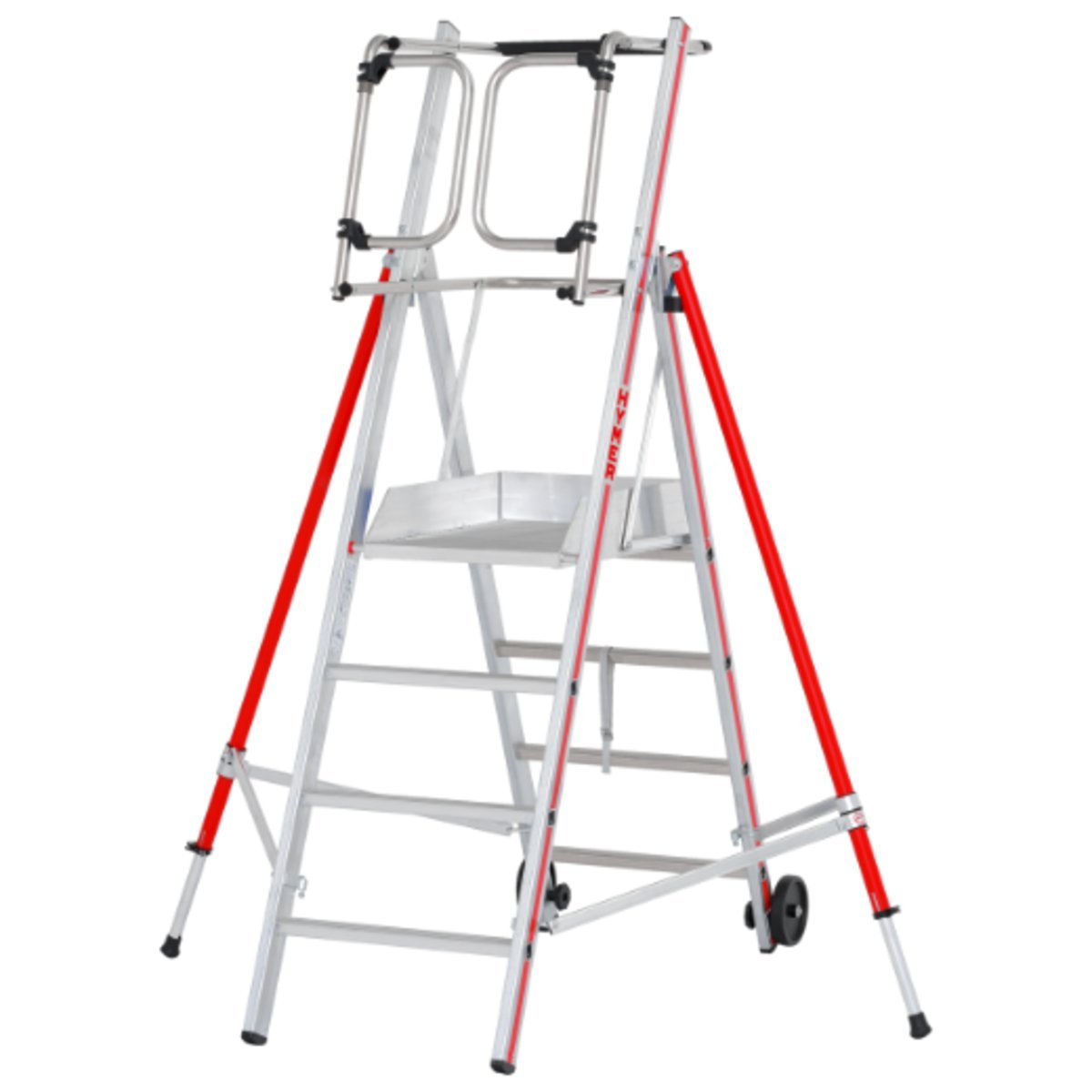 ∙ Sicheres, freihändiges Arbeiten durch Geländer und Knieleiste auf allen Seiten.