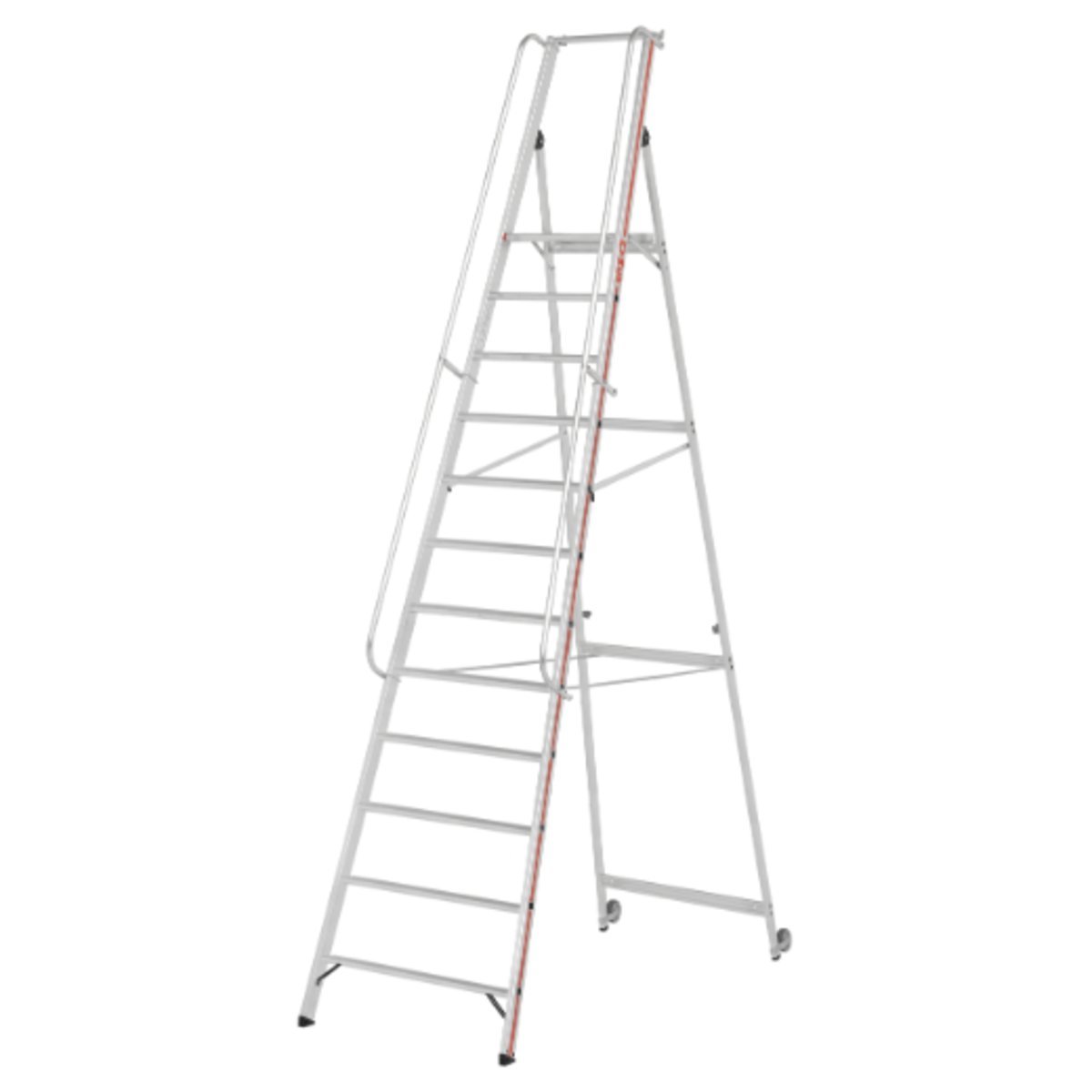 ● Speziell für Einsatzbereiche, die eine Verwendung von Podestleitern mit breitem Fahrwerk nicht zulassen oder das dichte Heranfahren an Regale erfordern.