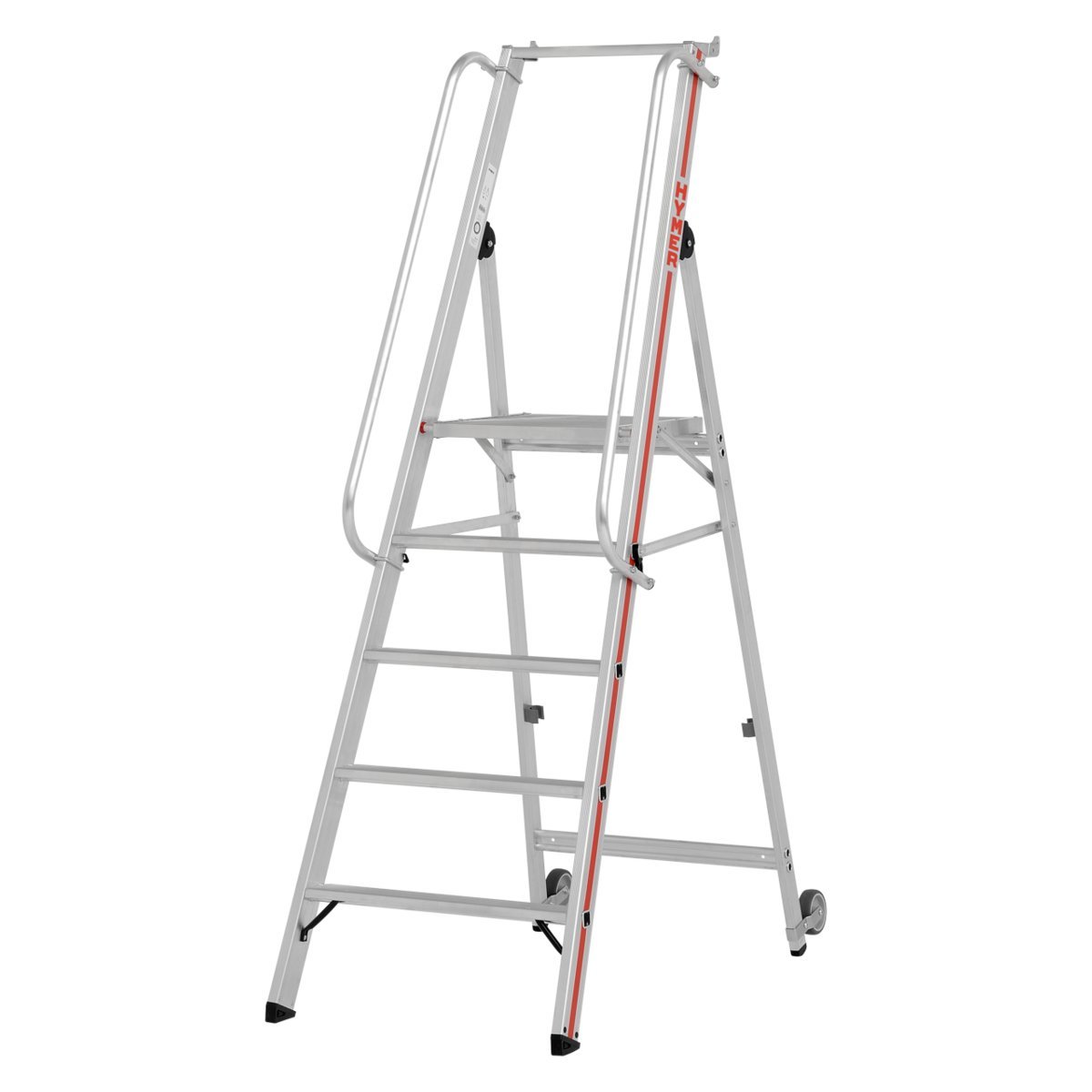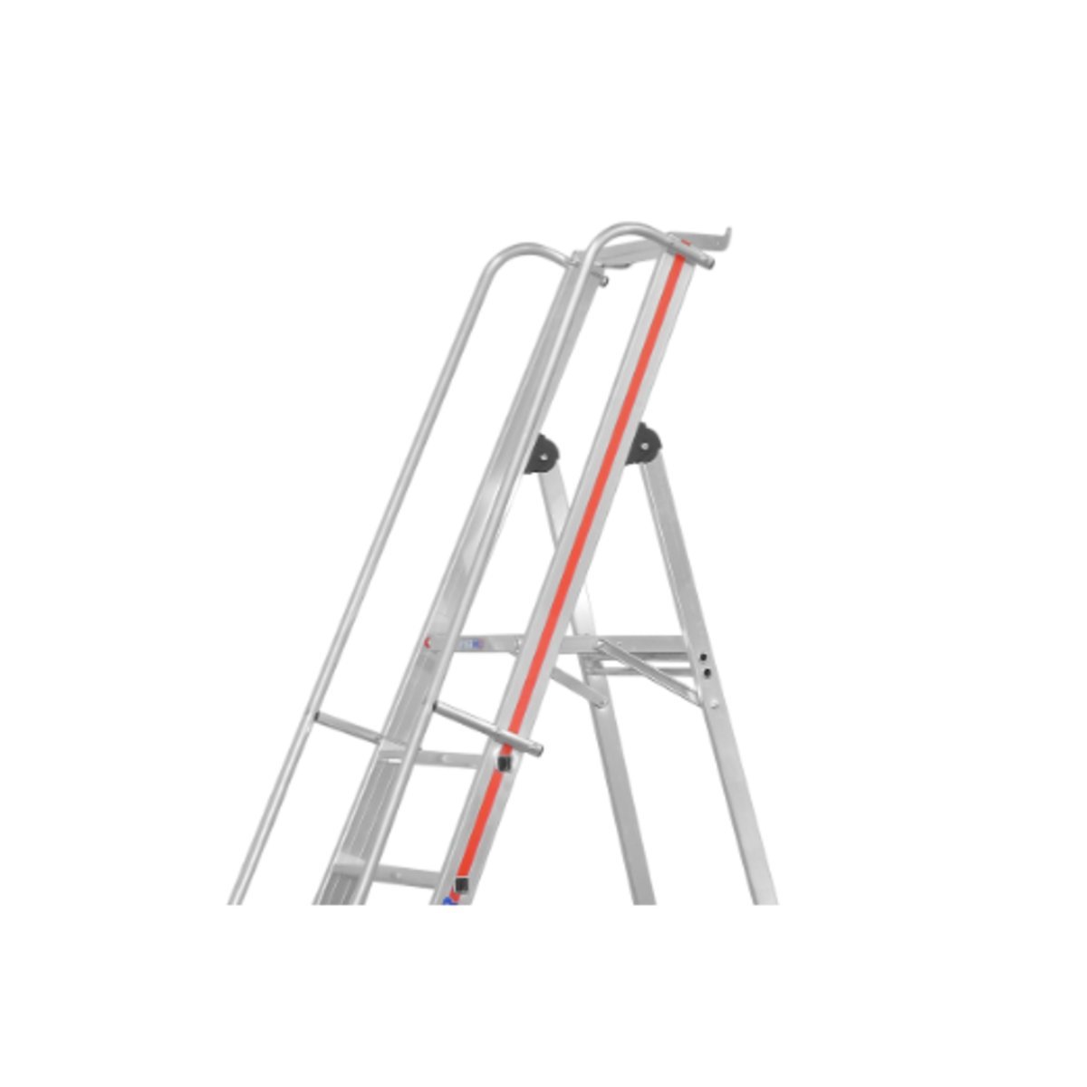 Plattformleiter mit Kipprollen und langem Handlauf