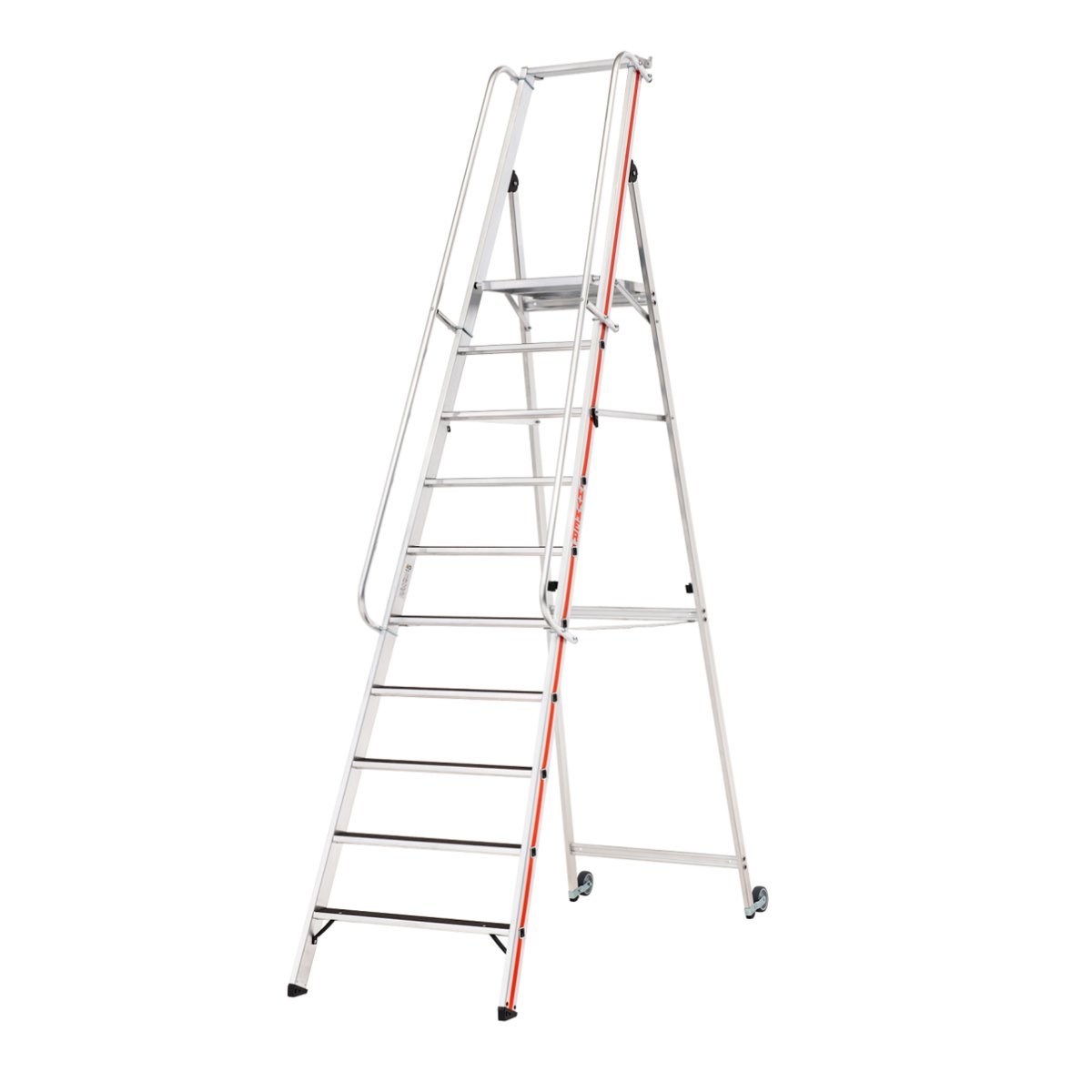 Plattformleiter R13 mit Kipprollen und langem Handlauf