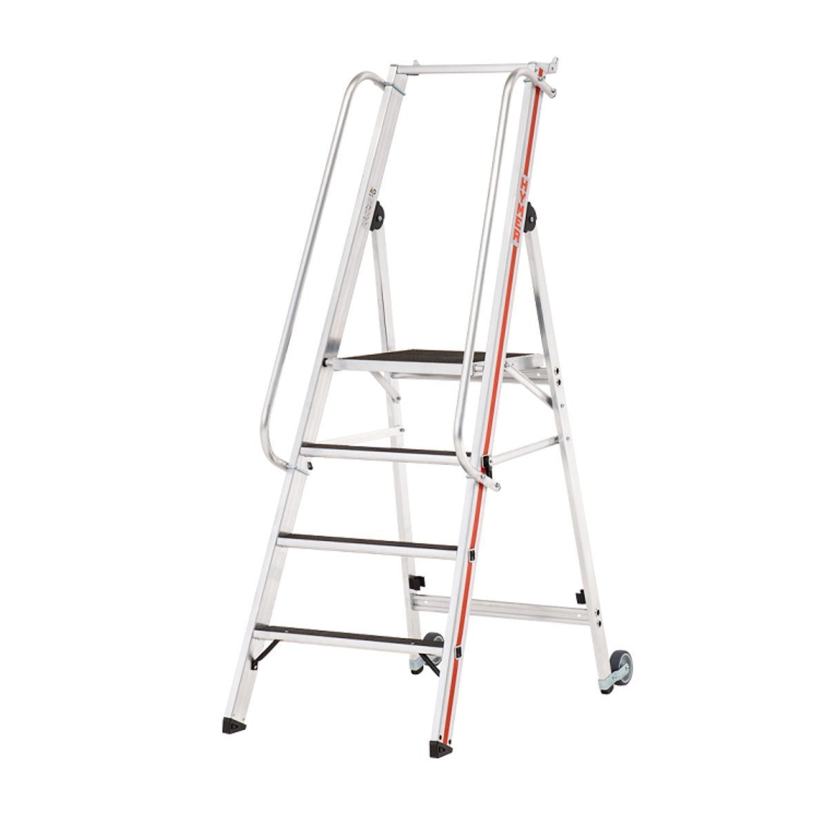 Plattformleiter R13 mit Kipprollen und langem Handlauf