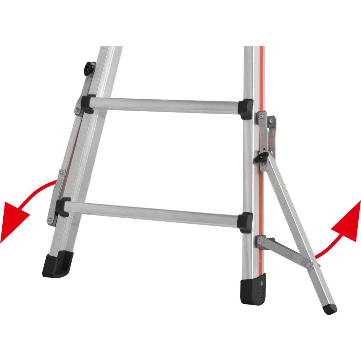 ∙ Mit Bolzengelenk. In Stehleiterposition kann die Leiter zum Versetzen zusammengeklappt werden, ohne vorher das Gelenk lösen zu müssen.