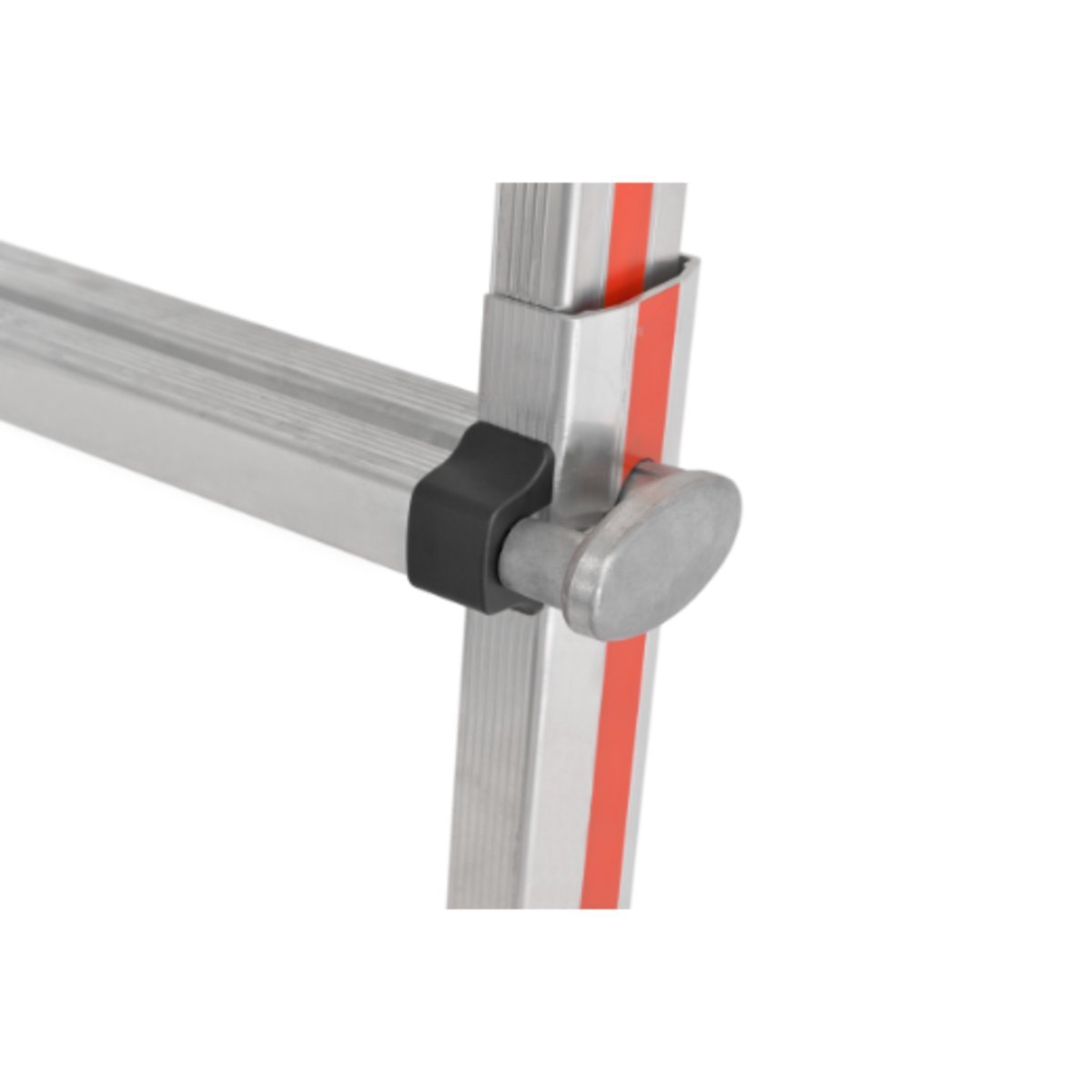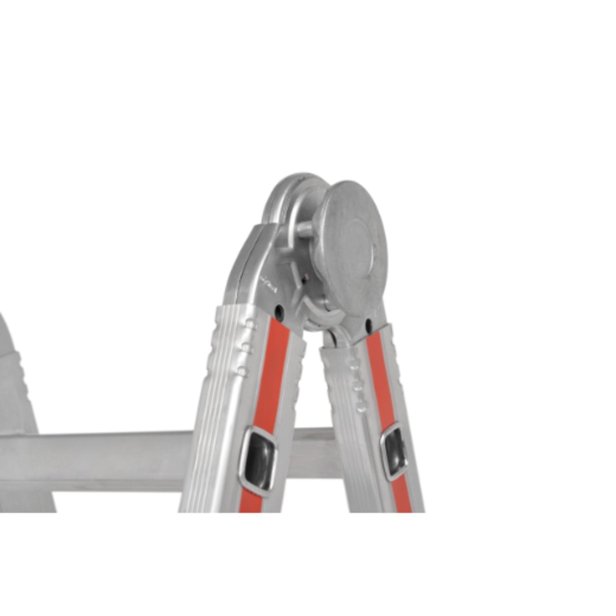∙ Ergonomische und wartungsfreundliche Bolzengelenke. In Stehleiterposition kann die Leiter zum Versetzen zusammengeklappt werden, ohne vorher das Gelenk lösen zu müssen.