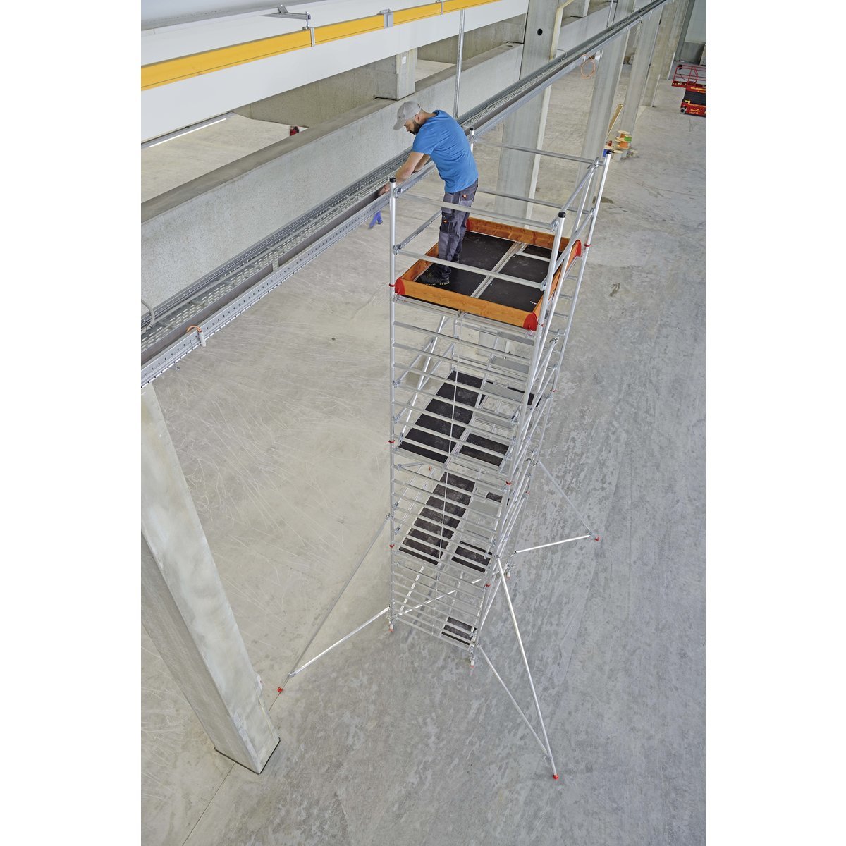 Treppen-Fahrgerüst mit Ausleger, Bühnenlänge 1,90 m, Rahmenteilbreite 1,50 m, Reichhöhe 8,25 m