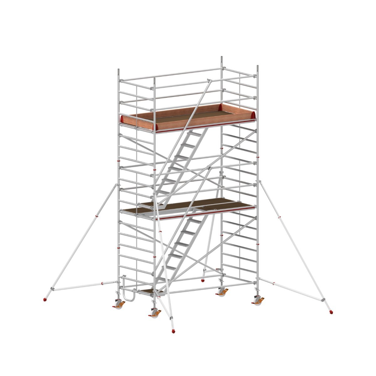 ∙ Schneller Auf- und Abbau durch massive Klickverschlüsse an Streben und Diagonalen und noch sicherer durch die in jeder Etage eingehängten Treppen.