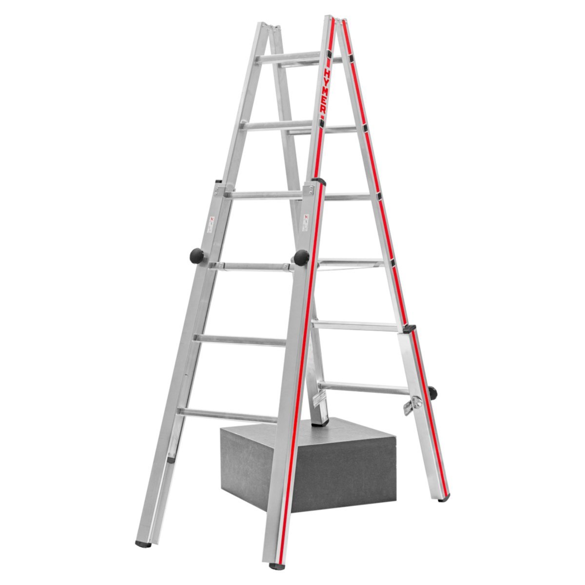 Hinweis: Der Auf- und Abstieg muss immer auf dem Leiterteil mit den kurzen Verlängerungen erfolgen!