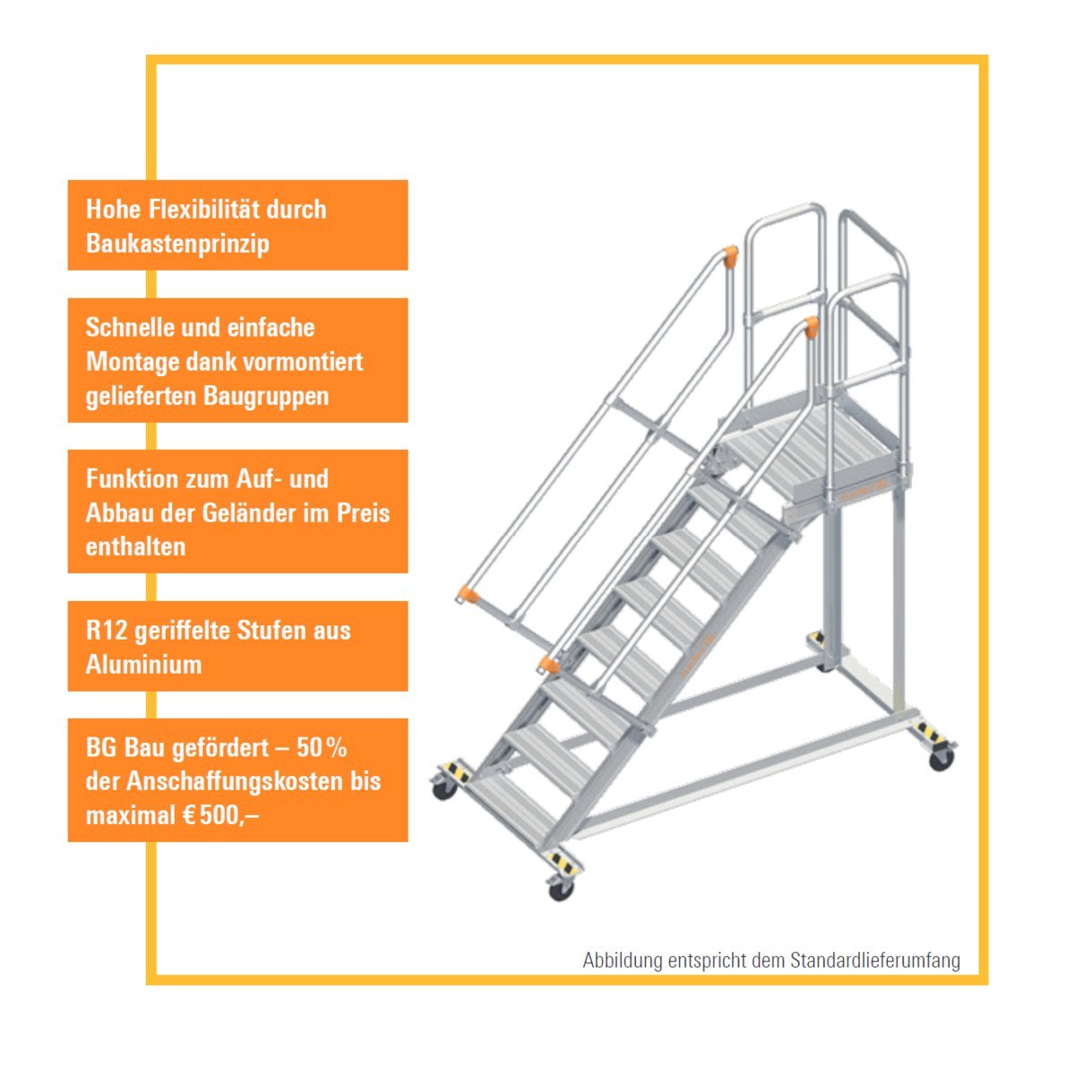 Alu-Wartungsbühne 113, Neigung 45°, Stufenbreit 800 mm